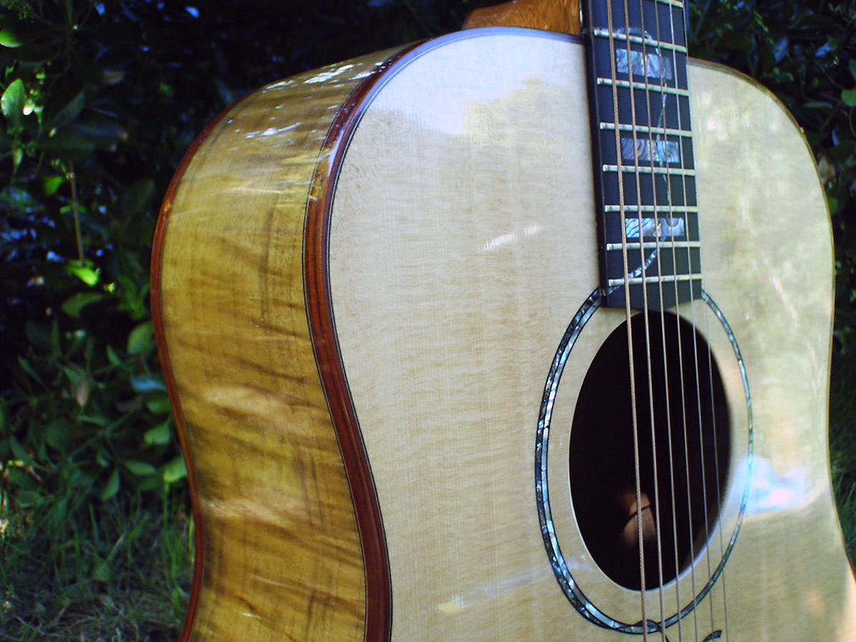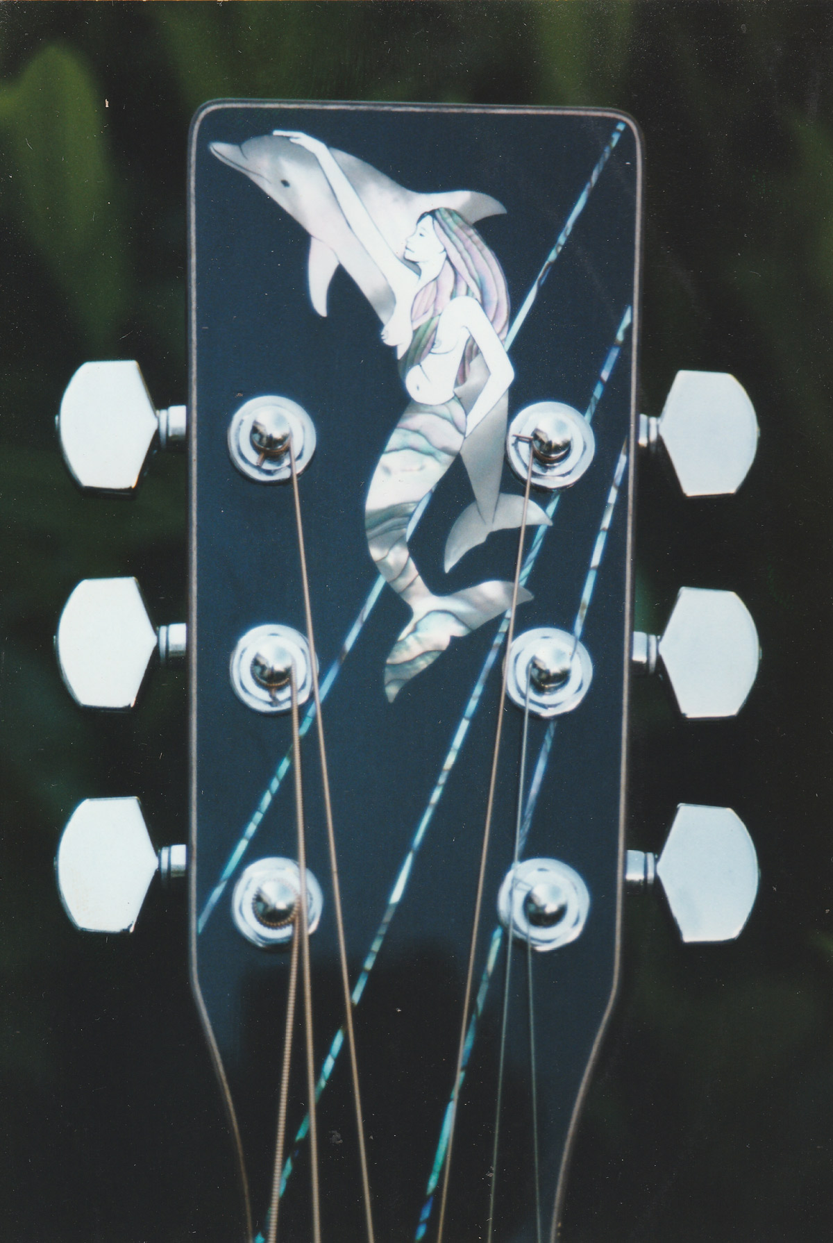 Custom Guitar by Roger Wendover-The GoddessCustom Guitar by Roger Wendover-The Goddess InlayThe Goddess by Roger Wendover-Oregon Figured Myrtlewood.'The Goddess' by Roger Wendover. Fingerboard Inlay Detail'Mermaid' by Roger Wendover. Pau Ferro Back & SidesMermaid by Roger Wendover. Inlay Headstock